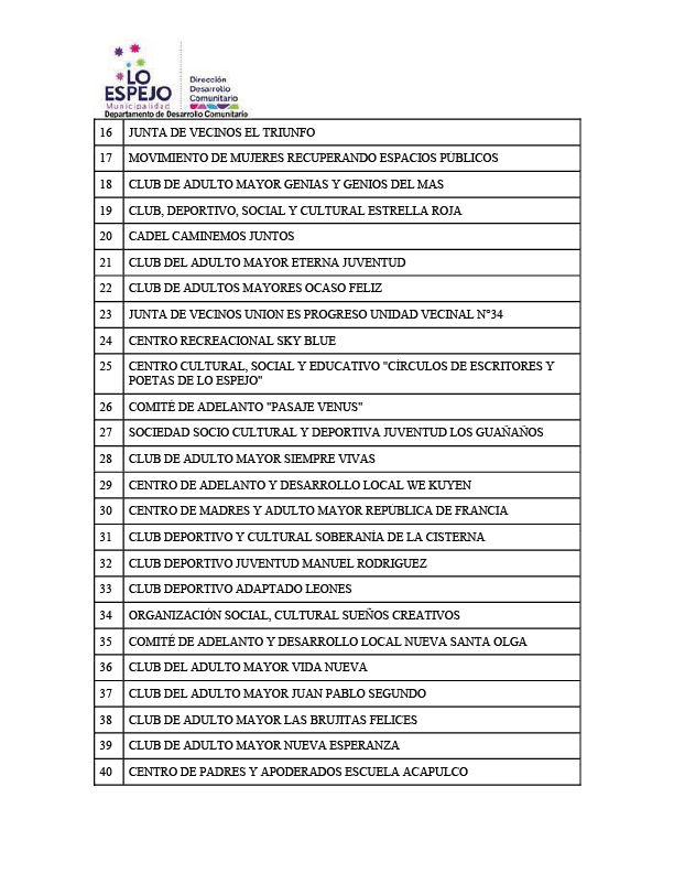 Este 10 de julio el Concejo Municipal aprobó las adjudicaciones (revisar el listado abajo) de las adjudicaciones, por lo que las organizaciones beneficiarias deberán realizar la firma de convenio para posteriormente generar la entrega de los recursos.