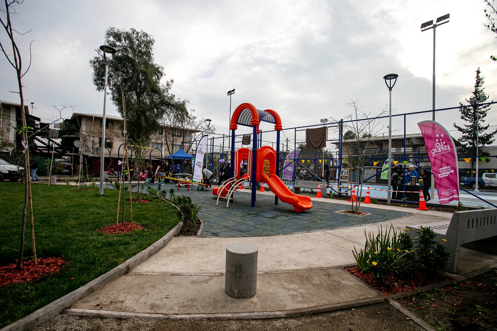 Además, para favorecer el uso y seguridad, se suman un sistema de iluminación para la cancha y toda la plaza.