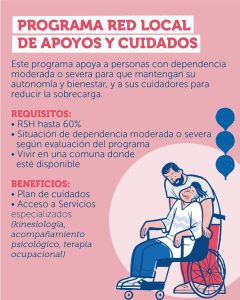 El Programa Red Local de Apoyos y Cuidados busca mantener la autonomía y bienestar de personas con dependencia moderada o severa, al mismo tiempo que reduce la sobrecarga de sus cuidadores.